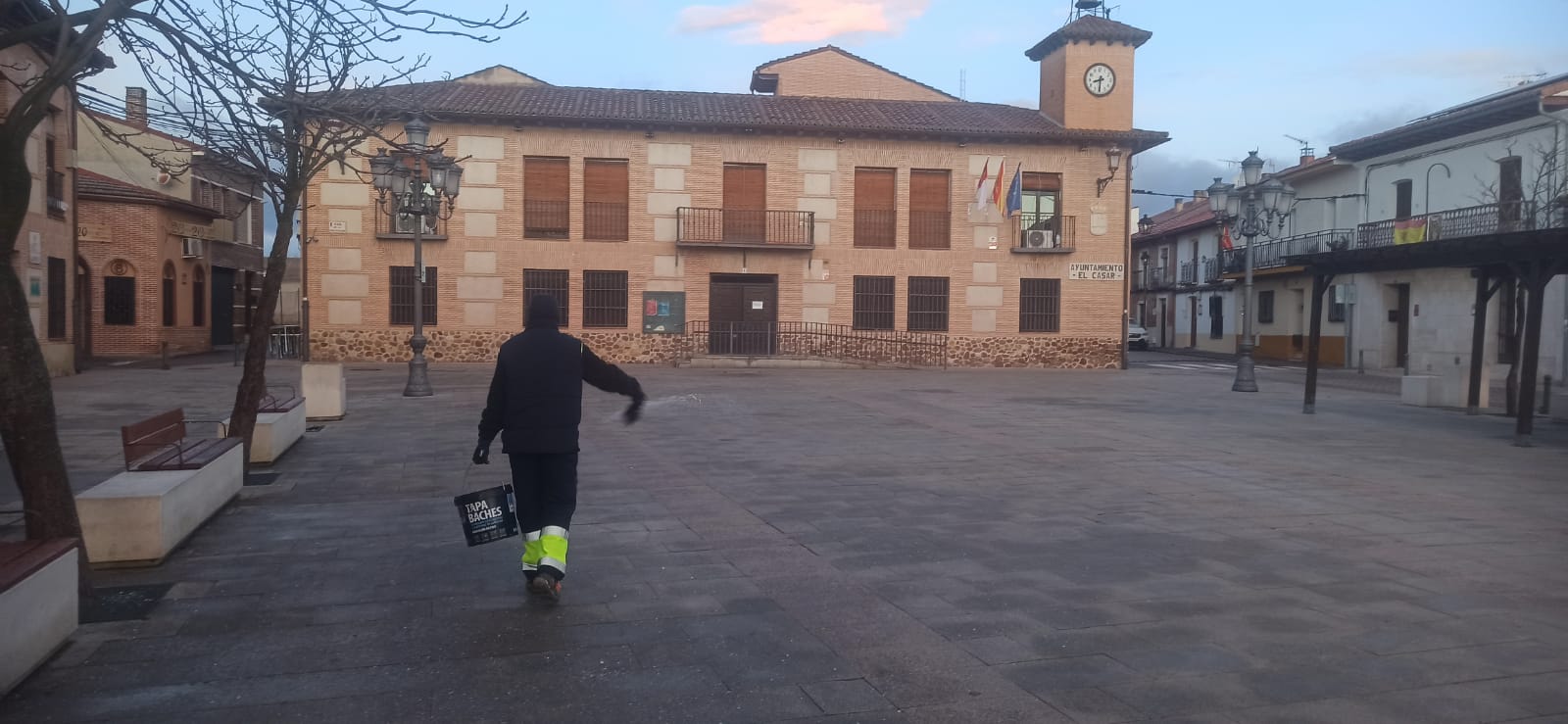 Durante la pasada noche, se ha producido una importante helada en el municipio. Ante esta situación, los operarios municipales han trabajado desde primeras horas realizando labores de esparcido de sal con los medios habituales (pickup y tractor) para garantizar la seguridad vial y peatonal.