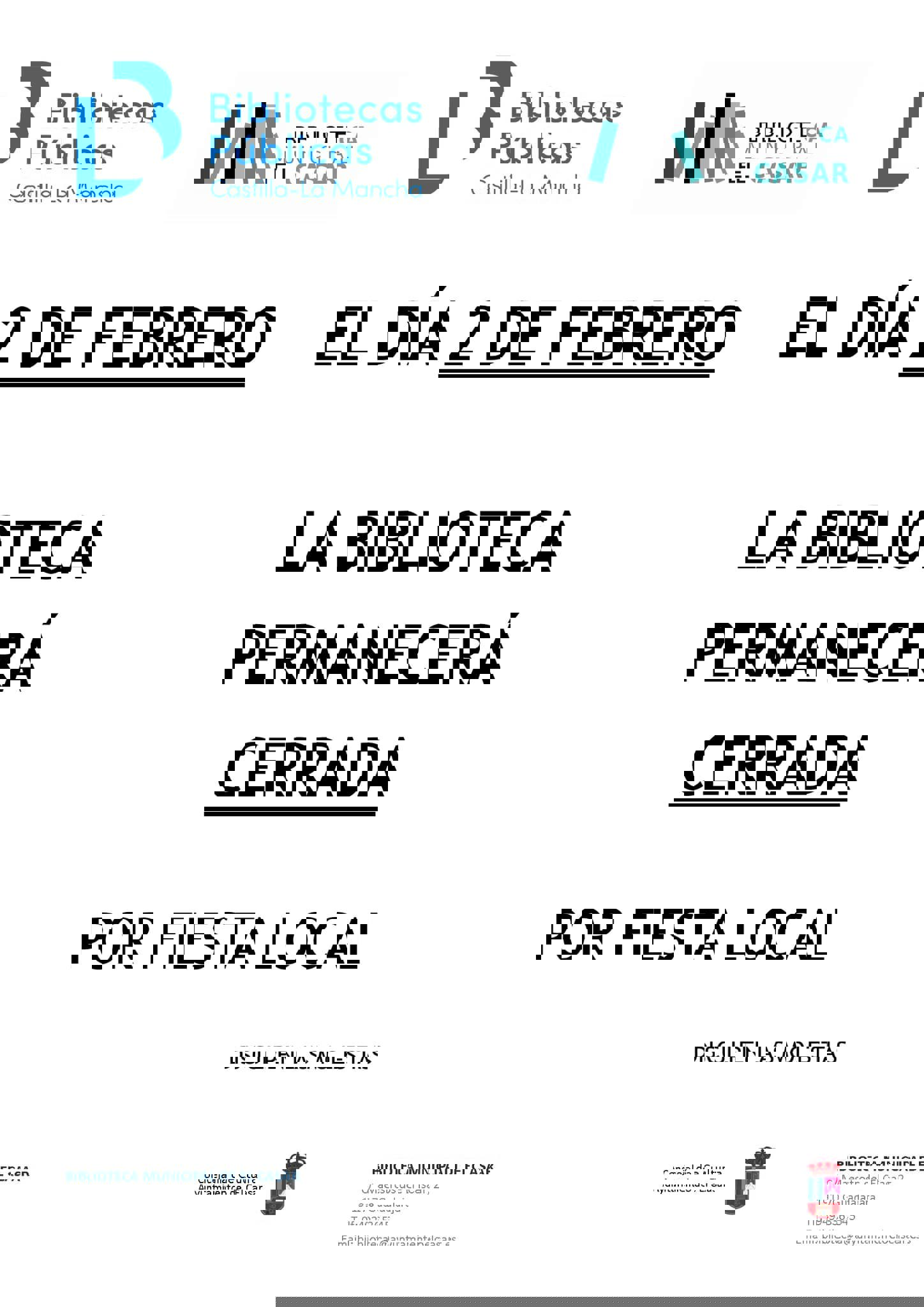 El 2 de febrero, la Biblioteca Municipal de El Casar permanecerá CERRADA por fiesta local.