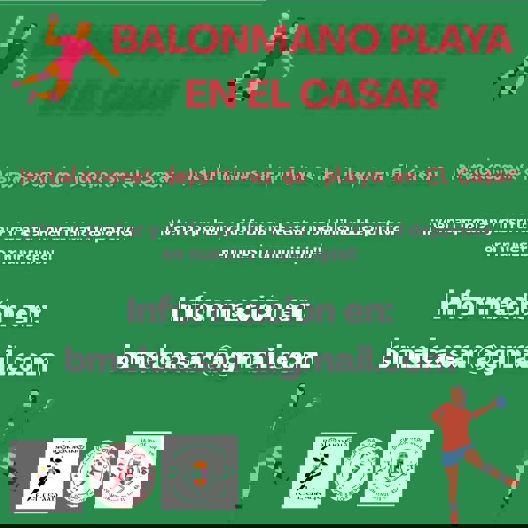 El Ayuntamiento de El Casar, a través de la Concejalía de Deportes, continúa con su apuesta por el balonmano playa, con esta nueva temporada, en colaboración con el Club Balonmano El Casar y el Club Balonmano Sanse, ofreciendo entrenamientos en las instalaciones deportivas de playa del municipio para todas las edades y categorías.