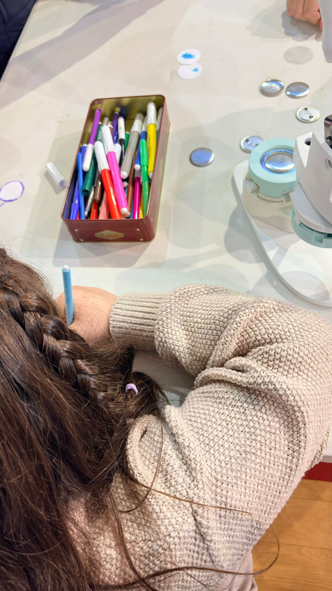 Además, también participaron en talleres creativos como el taller de chapas, donde elaboraron un detalle especial para regalar a sus padres.