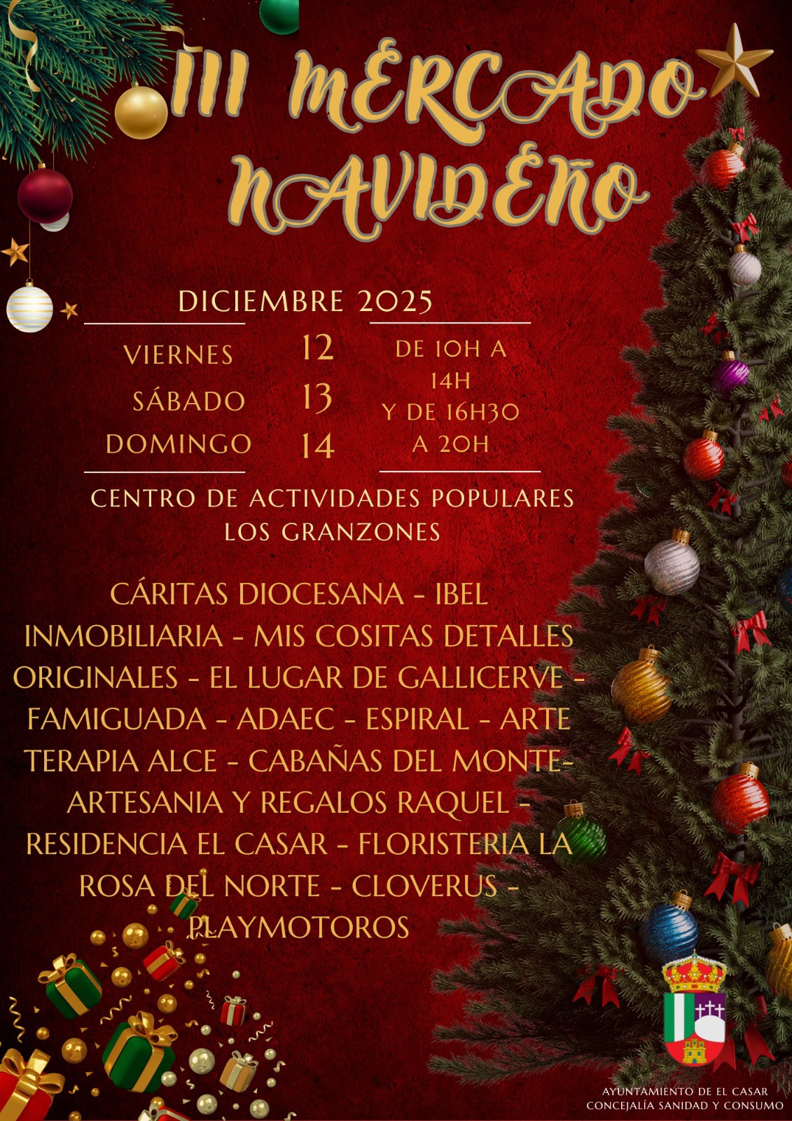 Los días 12, 13 y 14 de diciembre de 2025, el Centro de Actividades Populares Los Granzones se llenará de ambiente festivo con la celebración del III Mercado Navideño de El Casar, una cita ideal para disfrutar de la magia de estas fechas y apoyar al comercio y tejido asociativo local.