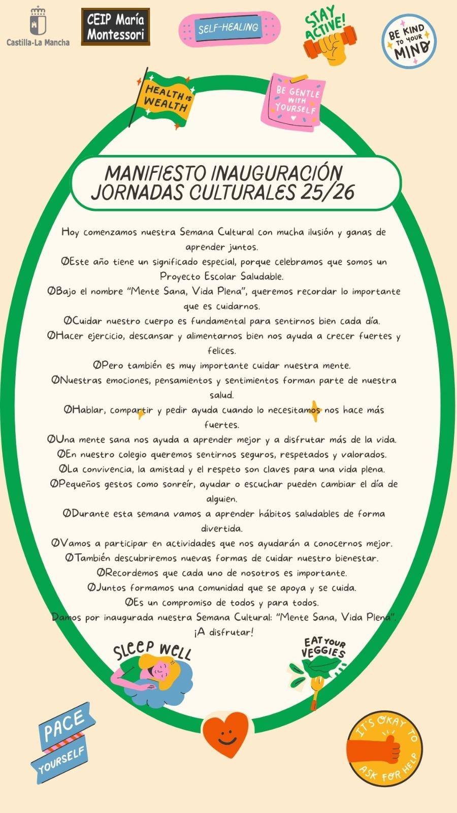 Bajo el lema “Mente sana, vida plena”, el centro desarrollará diferentes actividades centradas en el cuidado del cuerpo y la mente, promoviendo el aprendizaje de forma dinámica y participativa.